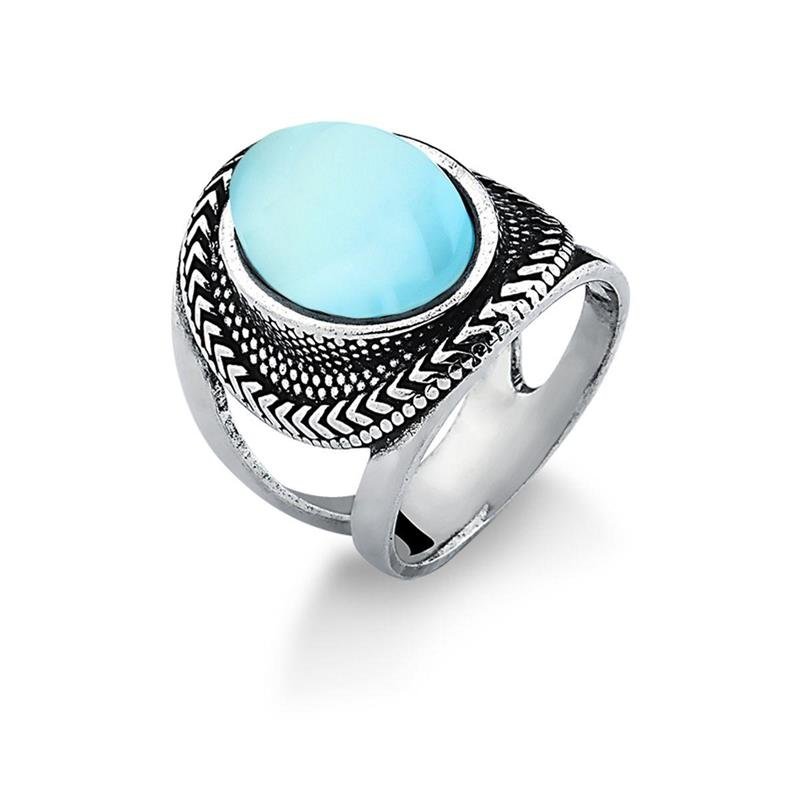 Anel Envelhecido Ágata Azul Céu OvalEste anel combina o acabamento rústico da prata envelhecida com a suavidade e brilho natural da ágata azul céu em formato oval. A pedra, com seu tom sereno, transmite calma e delicadeza, enquanto o aro robusto em prata escurecida garante presença e estilo. Uma peça charmosa e atemporal, perfeita para quem busca autenticidade e elegância natural.
