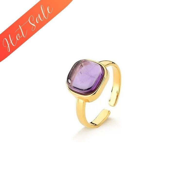 Anel Pedras Naturais Quadrado AmetistaEste elegante anel destaca uma pedra de ametista lapidada em formato quadrado. Conhecida por suas propriedades de calma e equilíbrio espiritual, a ametista emite uma energia serena e tranquilizadora. O design quadrado realça a beleza natural da pedra, conferindo ao anel um visual moderno e sofisticado. Ideal para quem busca um acessório que une a beleza das pedras naturais com um design contemporâneo, perfeito para adicionar um toque de serenidade e estilo ao seu visual.