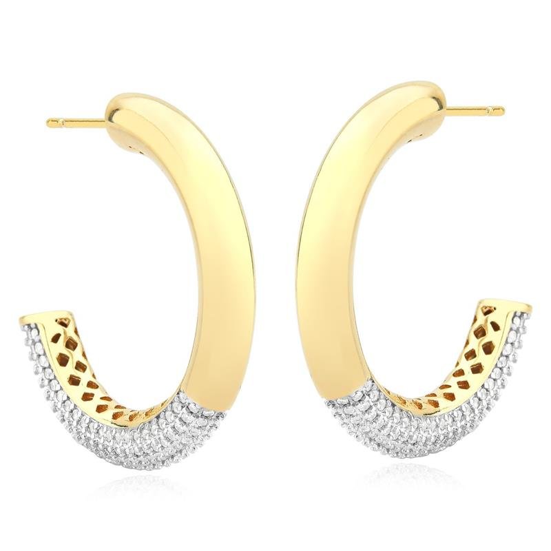 Argola Luxo Microcravação de ZircôniasBrinco meia argola tubular com metade da peça cravejada com zircônias, trazendo um toque de brilho e sofisticação. O design moderno e elegante combina a suavidade do formato tubular com o brilho delicado das zircônias, tornando-o uma opção versátil e sofisticada para diversas ocasiões.