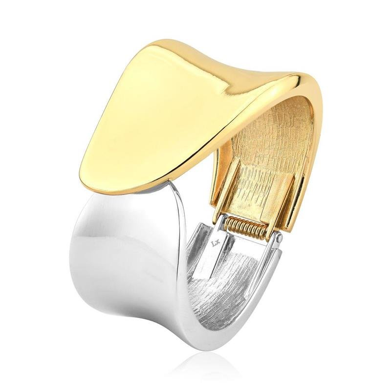 Bracelete Luxo Acessível Dual ImpactoCom design marcante e acabamento espelhado, o Bracelete Dual Impacto combina o dourado e o prateado em um contraste poderoso e contemporâneo. A forma robusta e fluida reforça a presença dessa peça, ideal para quem quer expressar estilo com atitude. Um acessório que transforma o look com um toque de ousadia e sofisticação.