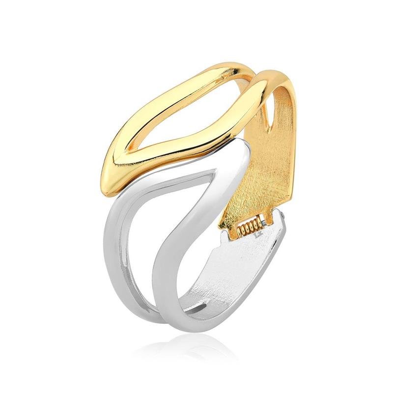 Bracelete Luxo Acessível Dual OndasDesign fluido e marcante define o Bracelete Dual Ondas. Com curvas que lembram o movimento das ondas, a peça combina dois banhos – Ouro e Ródio – em um contraste elegante e contemporâneo. Uma escolha versátil para destacar qualquer look com estilo e personalidade.