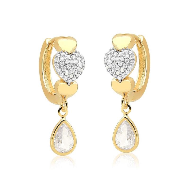Brinco Argola Corações e GotaO Brinco Argola Corações e Gota é uma joia encantadora que combina romantismo e sofisticação. A argola apresenta três pequenos corações — dois lisos e um cravejado com zircônias — que adicionam textura e brilho delicado. Um pêndulo com zircônia em formato de gota completa o design, trazendo leveza e movimento. Uma peça feminina e refinada que traduz amor e elegância em cada detalhe.