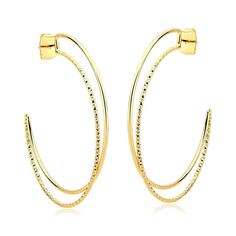 Brinco Argola Moderna Trabalhada 5,5cmO Brinco Argola Moderna Trabalhada eleva a argola clássica com um design contemporâneo e texturizado. A peça se destaca pelos seus detalhes trabalhados – que podem ser torções, texturas ou vazados – conferindo volume e sofisticação.