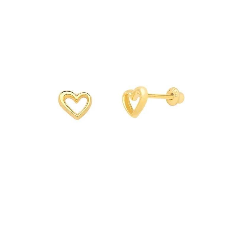Brinco Infantil Coração VazadoUm design delicado e cheio de doçura em formato de coração vazado, perfeito para as pequenas que adoram acessórios leves e encantadores. A peça transmite romantismo e leveza, sendo ideal para o dia a dia com um toque especial de charme.