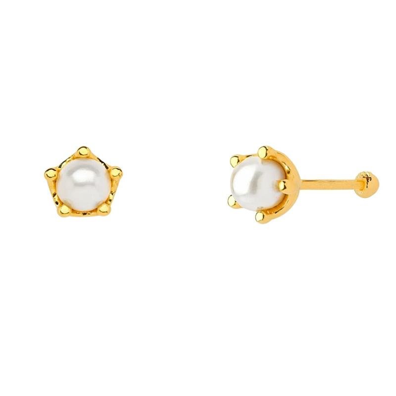 Brinco Infantil Coroa com Pérola 3mmDelicadeza e encanto em uma joia cheia de significado. Este brinco infantil combina o charme da coroa, símbolo de realeza e cuidado, com a suavidade de uma pérola de 3mm, resultando em uma peça clássica e sofisticada para iluminar o visual das pequenas.