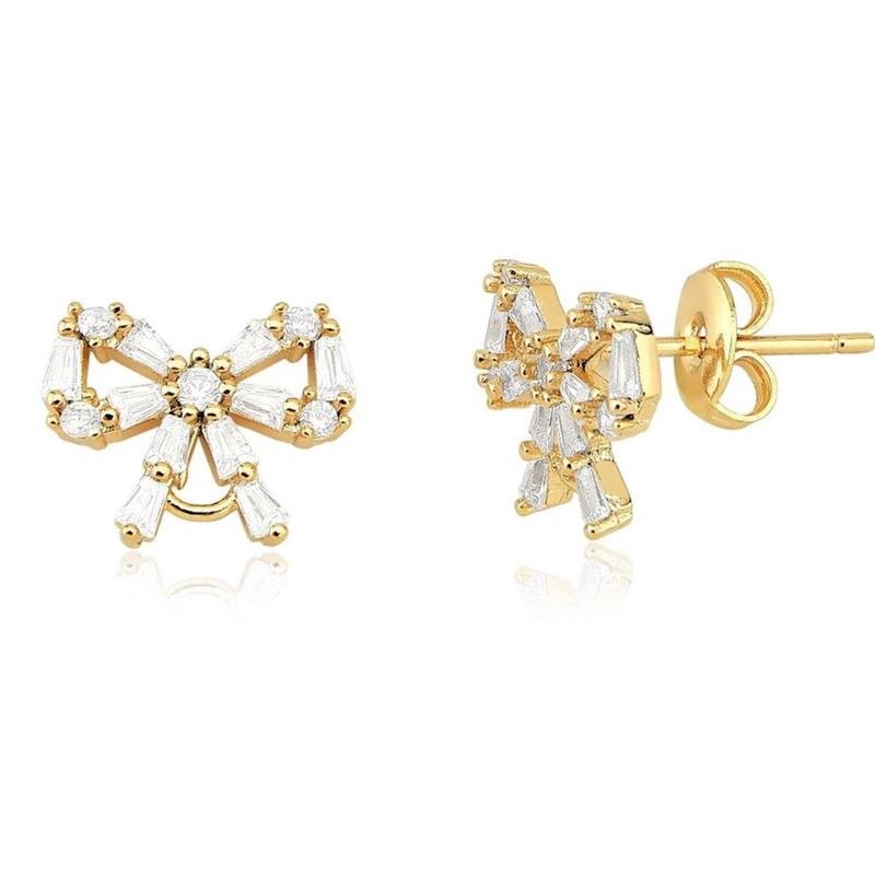 Brinco Laço CravejadoO Brinco Laço Cravejado é uma peça encantadora que une charme e sofisticação. Seu design em formato de laço, cravejado com zircônias, reflete brilho sutil e elegante. Versátil, pode ser usado em produções casuais refinadas ou ocasiões especiais. Uma joia atemporal que traduz romantismo e delicadeza em cada detalhe.