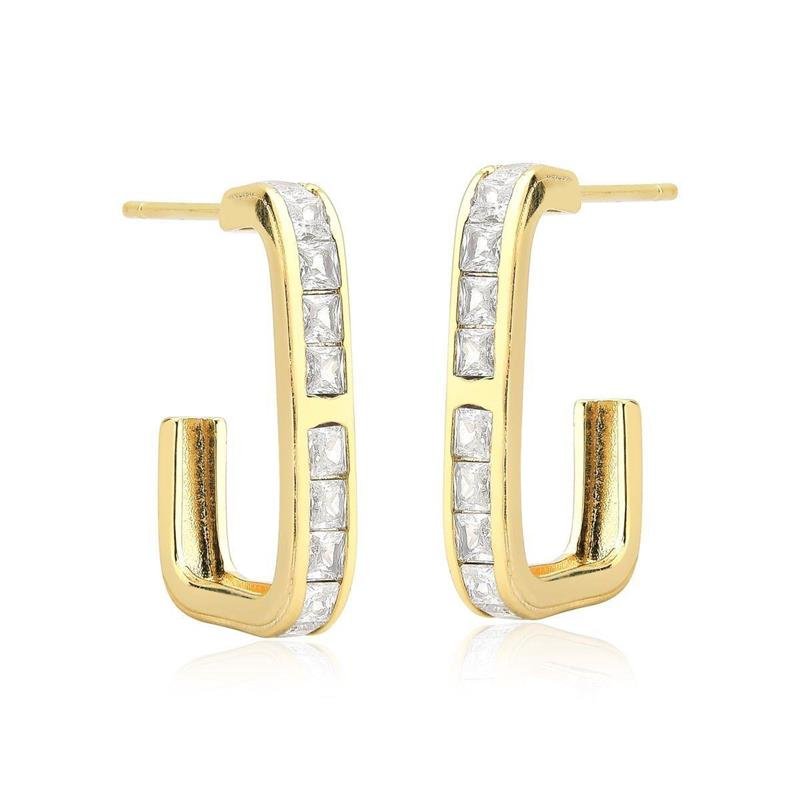 Brinco Retângulo CravejadoO Brinco Retângulo Cravejado é uma joia contemporânea que une design geométrico e brilho delicado. Seu formato retangular cravejado com zircônias reflete a luz com intensidade, criando um visual elegante e sofisticado. Ideal para composições modernas e produções refinadas. Uma peça atemporal que traduz feminilidade, elegância e estilo em cada detalhe.
