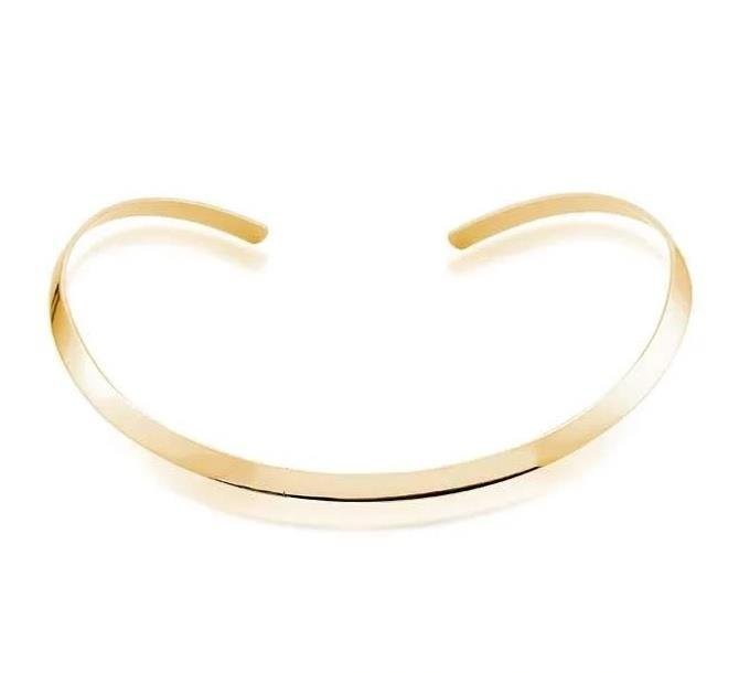 Por ser uma peça anatômica ajustasse com perfeição ao pescoço.Este colar traz um design clean e elegante, com um aro dourado que envolve delicadamente o pescoço, garantindo um visual moderno e sofisticado. Ideal para quem aprecia peças minimalistas que se destacam pela forma e pelo brilho suave do metal. Uma joia versátil para compor desde looks casuais até produções mais refinadas.