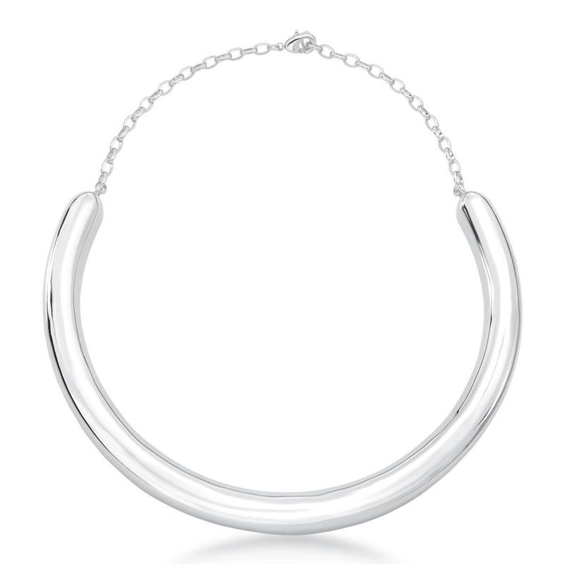 Colar Arco Contorno BoldCom design imponente e acabamento espelhado, o Colar Arco Contorno Bold traz volume e presença em uma peça contemporânea e sofisticada. Sua estrutura rígida com formas curvas valoriza o colo com elegância escultural, ideal para compor looks marcantes com um toque minimalista.