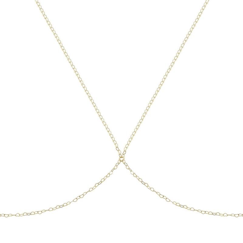 Colar Body Chain Hearts 2 em 1Este colar é uma peça única que combina elegância e ousadia de maneira encantadora. O colar apresenta uma corrente delicada que se transforma em um body chain, envolvendo graciosamente o corpo. O destaque fica por conta da corrente em formato de coração, adicionando um toque romântico e feminino à peça. Este acessório versátil é perfeito para elevar qualquer look, seja usado como colar para um toque sofisticado ou como body chain para um visual mais ousado e sensual.