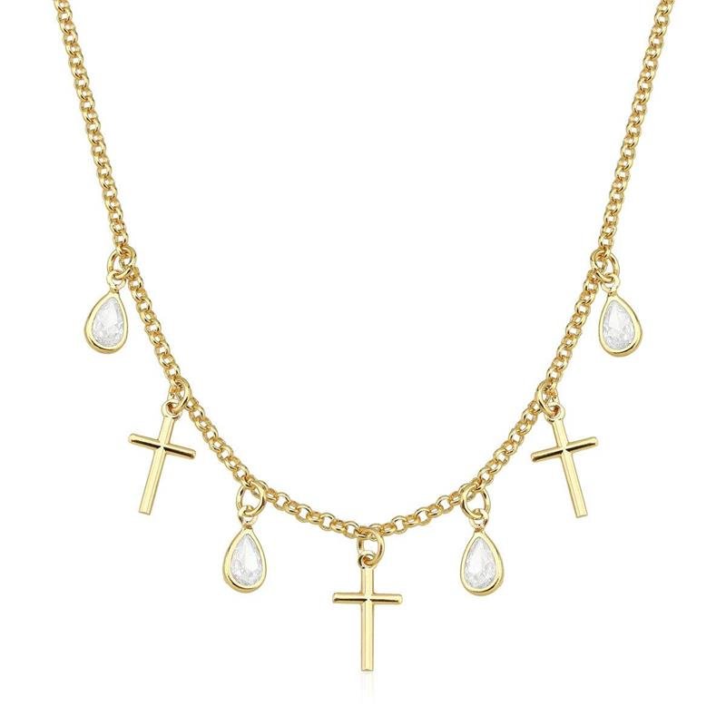 Colar Cruz e GotaO Colar Cruz e Gota é uma joia elegante que combina simbolismo e brilho em um design delicado. O pingente de cruz reflete fé e proteção, enquanto a gota de zircônia adiciona luminosidade e sofisticação. Ideal para composições delicadas e cheias de significado. Uma peça atemporal que traduz espiritualidade, elegância e feminilidade em cada detalhe.