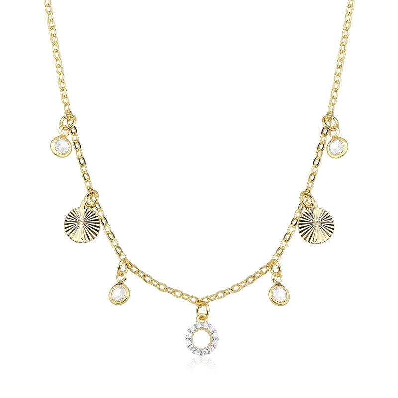 Colar Esferas HarmoniaO Colar Esferas Harmonia é uma joia sofisticada que combina brilho, textura e equilíbrio em um design refinado. Na parte inferior da corrente, três esferas se intercalam — uma delicada zircônia redonda, uma dourada facetada e uma central cravejada e vazada — criando um contraste sutil e elegante. Ideal para composições femininas e modernas, é uma peça versátil e atemporal. Um colar que traduz harmonia, estilo e luminosidade em cada detalhe.
