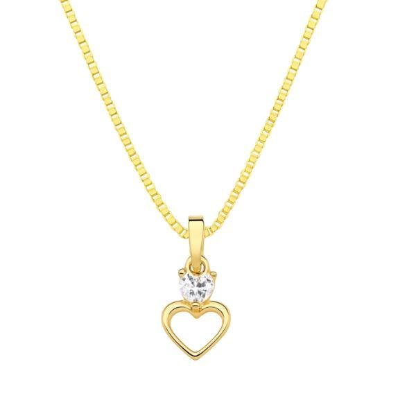 Colar Infantil Coração Vazado e Ponto de LuzDelicadeza e brilho em um só conjunto. O formato de coração vazado transmite leveza e romantismo, enquanto o ponto de luz adiciona um toque clássico de sofisticação. Uma joia encantadora, perfeita para as pequenas que já gostam de acessórios cheios de charme.