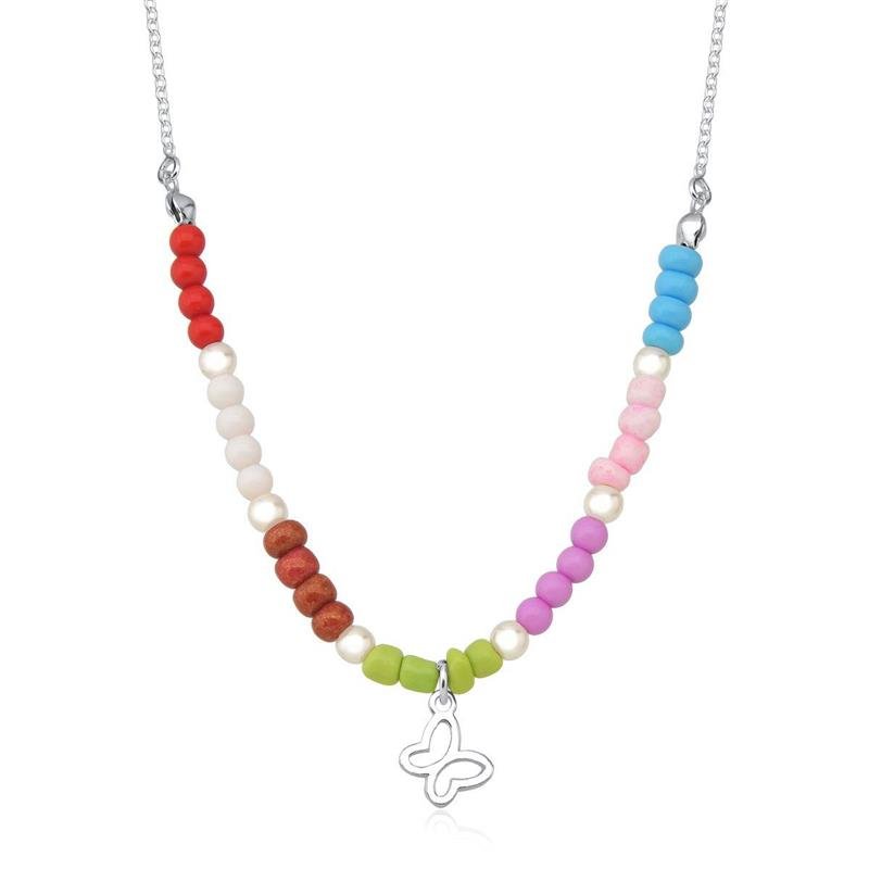 Colar Infantil Mix Colors BorboletaCom um pingente de borboleta, bolinhas coloridas e pequenas pérolas, este colar infantil é puro encanto! A mistura de texturas e tons traz leveza e alegria ao visual das pequenas, tornando a peça perfeita para o dia a dia ou ocasiões especiais. Um acessório divertido e delicado que celebra a infância com cor e ternura.