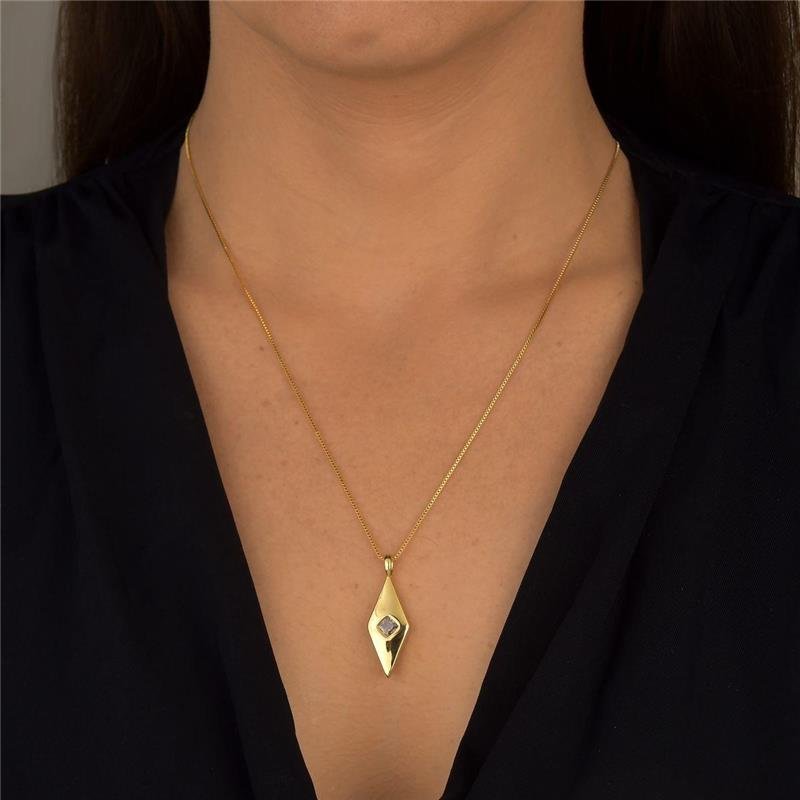 Colar Losango com ZircôniaDelicado e sofisticado, este colar traz um pingente em formato de losango com zircônia central, refletindo brilho e elegância. Uma peça versátil que valoriza desde combinações casuais até produções mais formais.