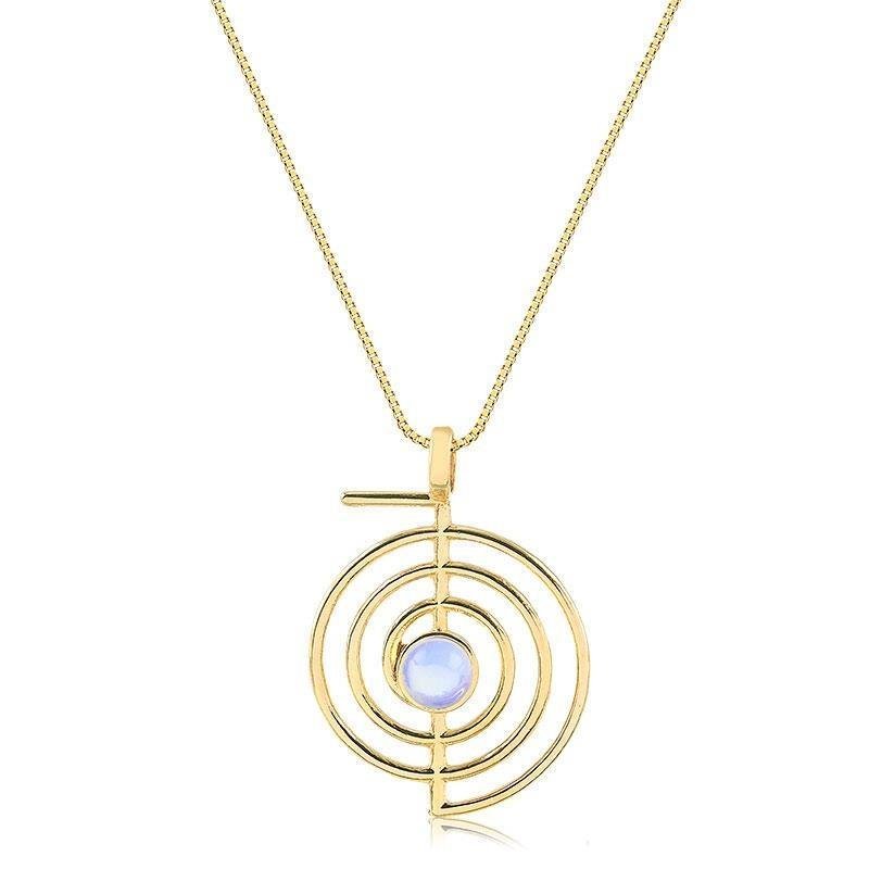Colar Opalina CHO KU REIJoia repleta de significado e energia, com pingente inspirado no símbolo Cho Ku Rei, amplamente usado no Reiki para potencializar a força vital e promover equilíbrio. A pedra opalina reflete tons suaves e iridescentes, transmitindo serenidade e harmonia. Com acabamento delicado e toque sofisticado, é ideal para quem busca estilo aliado à espiritualidade.