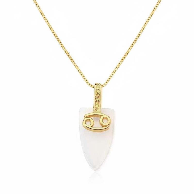 Colar Pedras Naturais Opalina Signo CâncerEleve sua energia e conecte-se com o poder do seu signo com o nosso exclusivo Colar de Pedras Naturais Opalina, adornado com o símbolo do Signo de Câncer. Este colar combina a beleza e a serenidade da opalina com a força e a intuição dos cancerianos de 21 de Junho á 20 de Julho.