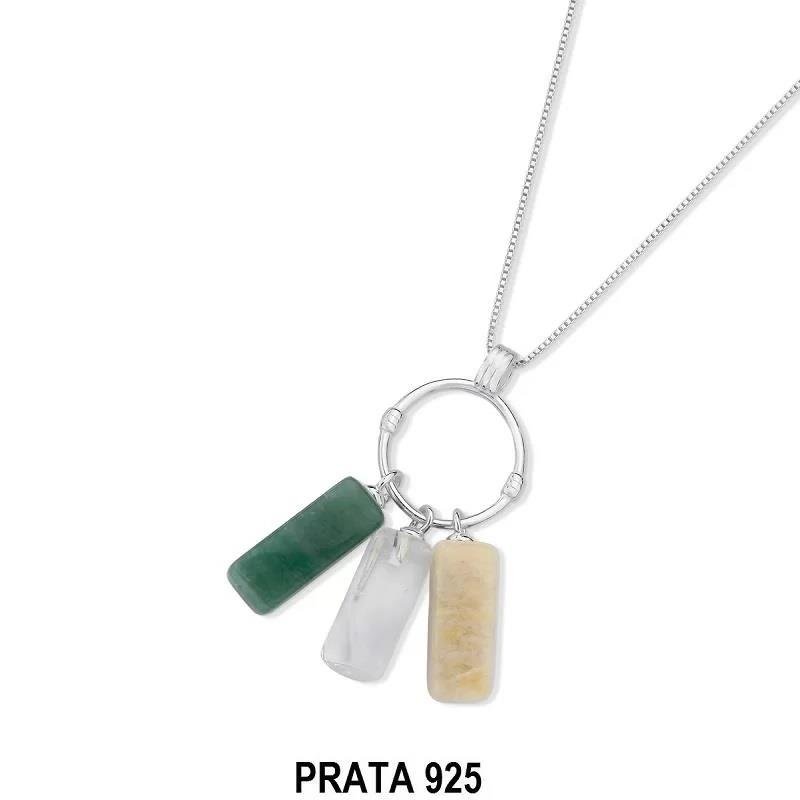 Colar Harmonia Prata 925 Pedras Naturais Quartzo Verde, Cristal De Rocha, Amazonita BegeEncontre equilíbrio e serenidade com nosso Colar Harmonia em Prata 925 com Pedras Naturais de Quartzo Verde, Cristal de Rocha e Amazonita Bege. Este colar foi cuidadosamente desenhado para combinar a beleza das pedras naturais com suas propriedades harmonizadoras, oferecendo um acessório que não só embeleza, mas também promove paz e bem-estar.