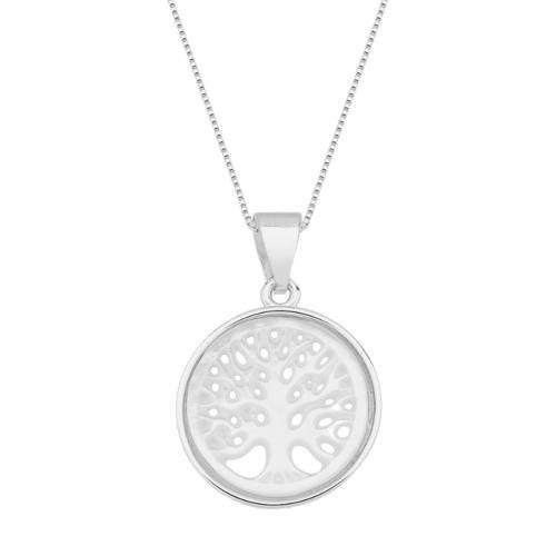Colar Prata Leve Árvore da Vida Madrepérola GEste colar em prata leve apresenta a Árvore da Vida sobre uma base de madrepérola no tamanho G, unindo simbolismo e elegância natural. A árvore representa força, crescimento e equilíbrio, enquanto a madrepérola reflete suavidade e luz. Uma joia perfeita para quem busca significado, leveza e beleza no dia a dia.