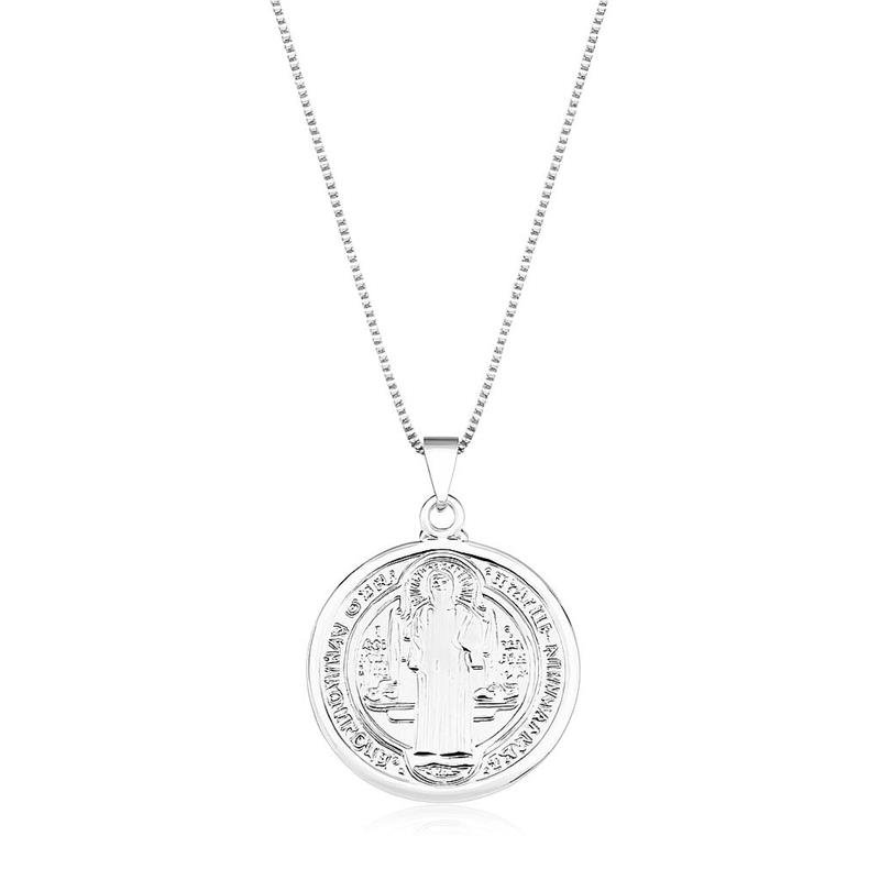 Colar Prata Leve Com Medalha de São BentoO Colar Com Medalha de São Bento é um acessório significativo e elegante, ideal para aqueles que buscam uma peça com profundo simbolismo espiritual. A medalha de São Bento, conhecida por suas propriedades protetoras e de fé, é o destaque deste colar, exibindo detalhes intricados que representam a devoção e a proteção associadas ao santo.