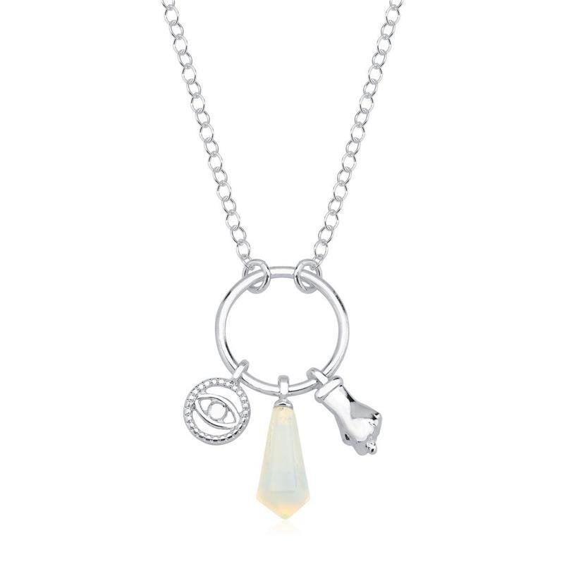 Colar Prata Leve Opalina PatuáUm amuleto de estilo e proteção. O Colar Prata Leve Opalina Patuá combina a delicadeza da pedra opalina — com seu brilho leitoso e energia calmante — ao simbolismo poderoso de dois pingentes: o olho grego, tradicionalmente associado à proteção contra energias negativas, e a figa, símbolo de sorte e bons caminhos.