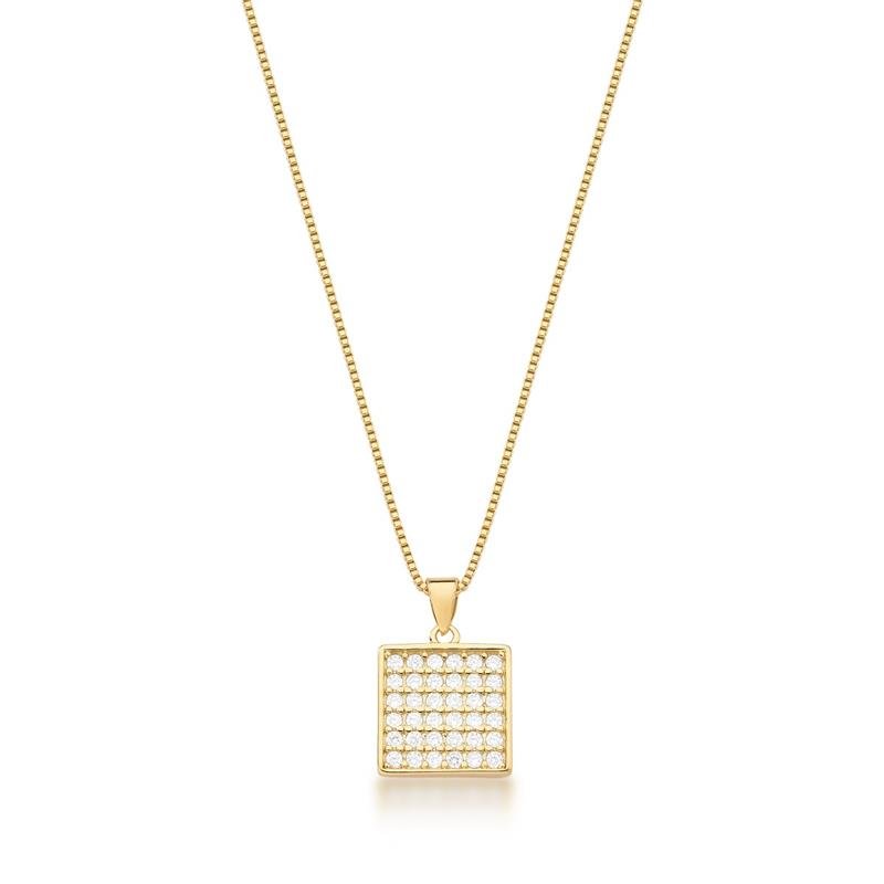 Colar Quadrado CravejadoUma peça sofisticada e moderna, ideal para quem busca elegância com um toque contemporâneo. O pingente em forma de quadrado é meticulosamente cravejado com pedras brilhantes, criando um efeito deslumbrante que capta e reflete a luz. Este colar é perfeito para adicionar um brilho refinado a qualquer look, tornando-se um acessório versátil e estiloso para diversas ocasiões.