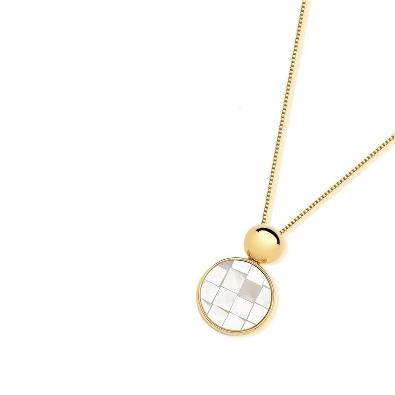 Colar Redondo Mosaico MadrepérolaColar com pingente redondo de madrepérola em mosaico, exibindo um padrão único que combina delicadeza e sofisticação. Uma peça versátil, perfeita para adicionar um toque de elegância a qualquer look.