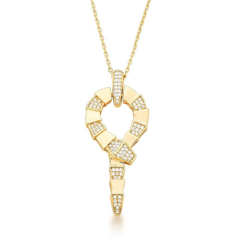 Colar Serpente CravejadaCom design elegante e curvilíneo, este colar traz o símbolo da serpente cravejada com zircônias que refletem a luz com sofisticação. A serpente representa renovação, sabedoria e poder, tornando esta peça perfeita para quem busca um acessório cheio de significado e presença. Ideal para compor looks ousados e sofisticados com um toque místico.