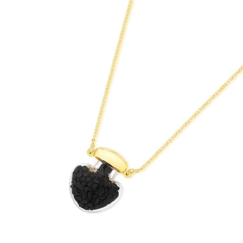 Colar Turmalina Negra Pingente de VidroEste colar traz um encantador pingente em formato de coração feito em vidro, com pequenos fragmentos de turmalina negra soltos em seu interior, criando um efeito visual sutil e mágico a cada movimento. A transparência do vidro somada ao brilho das pedras proporciona leveza e romantismo à peça, perfeita para composições delicadas e cheias de significado.