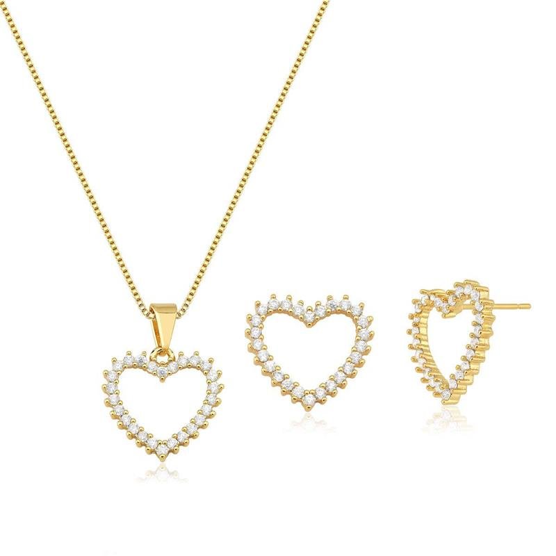 Conjunto Coração VazadoO Conjunto Coração Vazado é uma joia encantadora que celebra o amor com sutileza e elegância. O colar e os brincos apresentam o mesmo design de coração vazado, criando um visual leve e sofisticado. Ideal para compor produções delicadas e femininas, é uma opção versátil para todas as ocasiões. Um conjunto que traduz charme, romantismo e brilho em cada detalhe.
