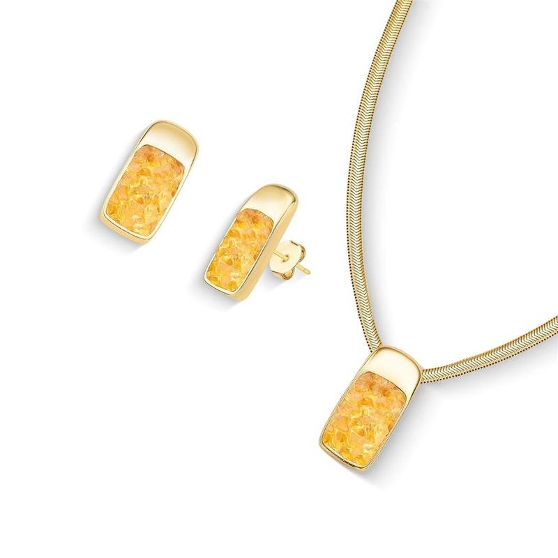 Conjunto Fragmentos Citrino RetangularA combinação da energia próspera do citrino com a forma geométrica retangular cria uma joia que é um verdadeiro talismã de sucesso e bom gosto. Ideal para quem busca um acessório que conte uma história e adicione um toque de luz e sofisticação à sua coleção.