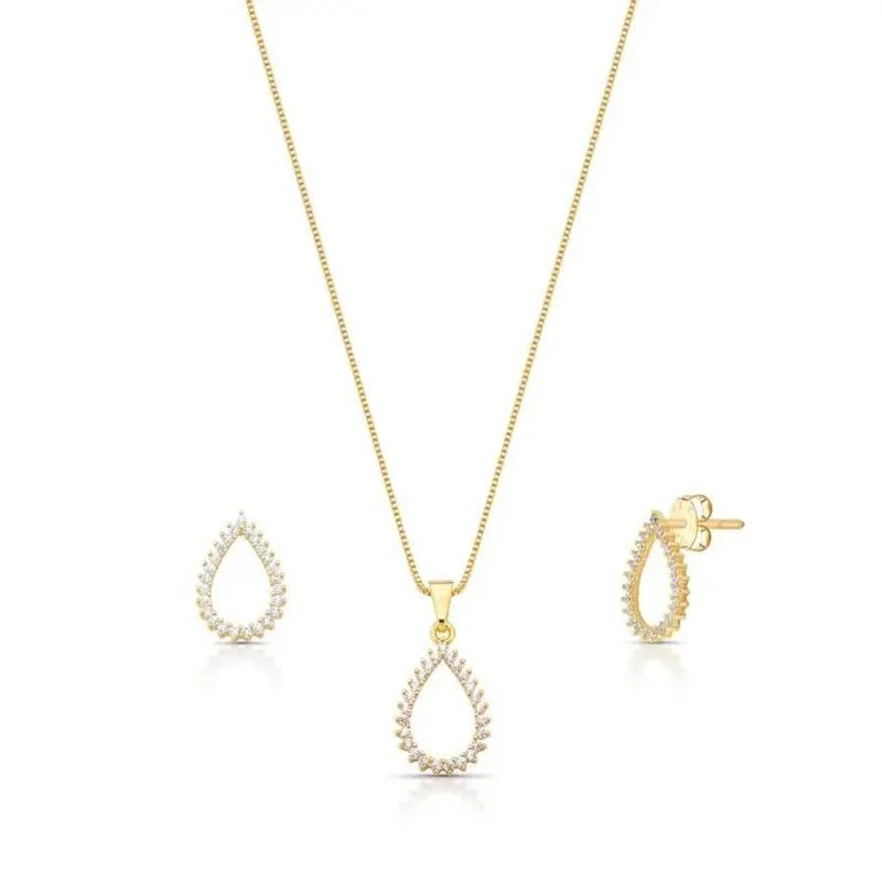 Conjunto Gota VazadoO Conjunto Gota Vazado é uma joia elegante e versátil que une design leve e contemporâneo. O colar e os brincos apresentam o formato clássico de gota vazada, simbolizando delicadeza e equilíbrio. Seu acabamento polido reflete brilho sutil e sofisticado, ideal para composições femininas e refinadas. Uma peça atemporal que traduz elegância e harmonia em cada detalhe.