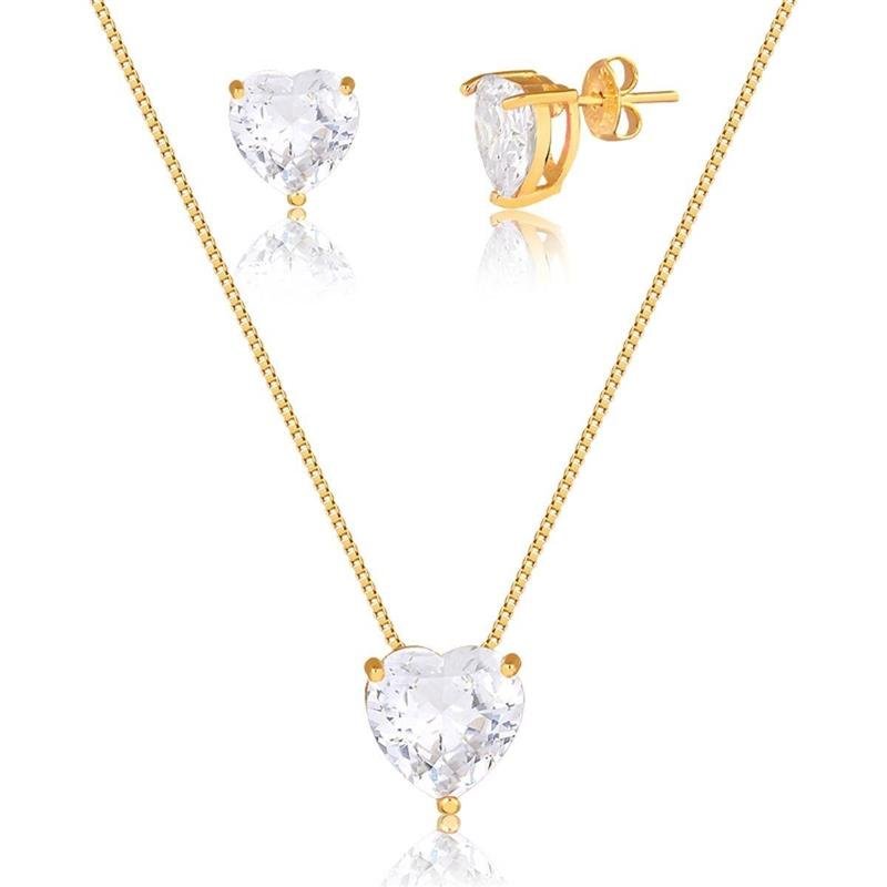 Conjunto Ponto de Luz Coração PO Conjunto Ponto de Luz Coração P é a joia ideal para quem busca expressar afeto com delicadeza e brilho. Composto por brinco e colar, as peças destacam a zircônia no clássico e romântico formato de Coração, garantindo um brilho sutil.