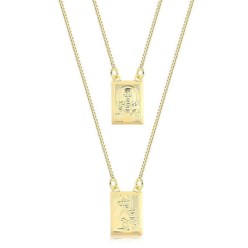 Escapulário Nossa Sra do Carmo e Sagrada FamíliaEste belo escapulário é banhado a ouro, apresentando as imagens sacras de Nossa Senhora do Carmo e da Sagrada Família. Uma expressão tocante de devoção e proteção, este escapulário é perfeito para quem busca uma ligação espiritual constante. A durabilidade da peça garante que este símbolo de fé acompanhe você com elegância e significado duradouro.