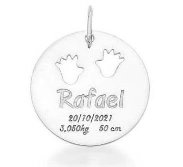 Pingente Nascimento Com Mãozinha Personalizado Nome Prata Legítima